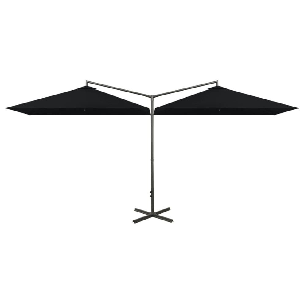 (black) vidaXL Double-Head Garden Parasol with LEDs Sunshade Outdoor Umbrella Black
