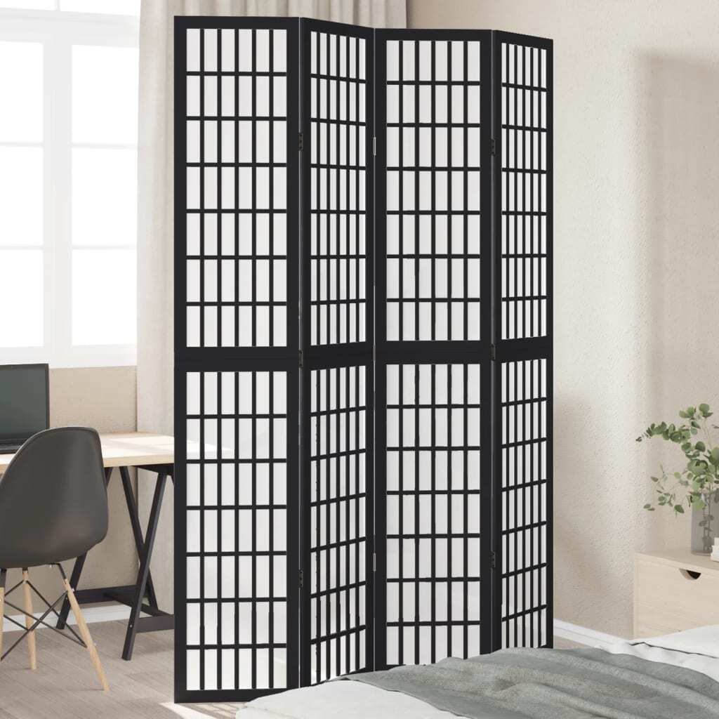 Room Divider 4 Panels Black Solid Wood Paulownia vidaXL
