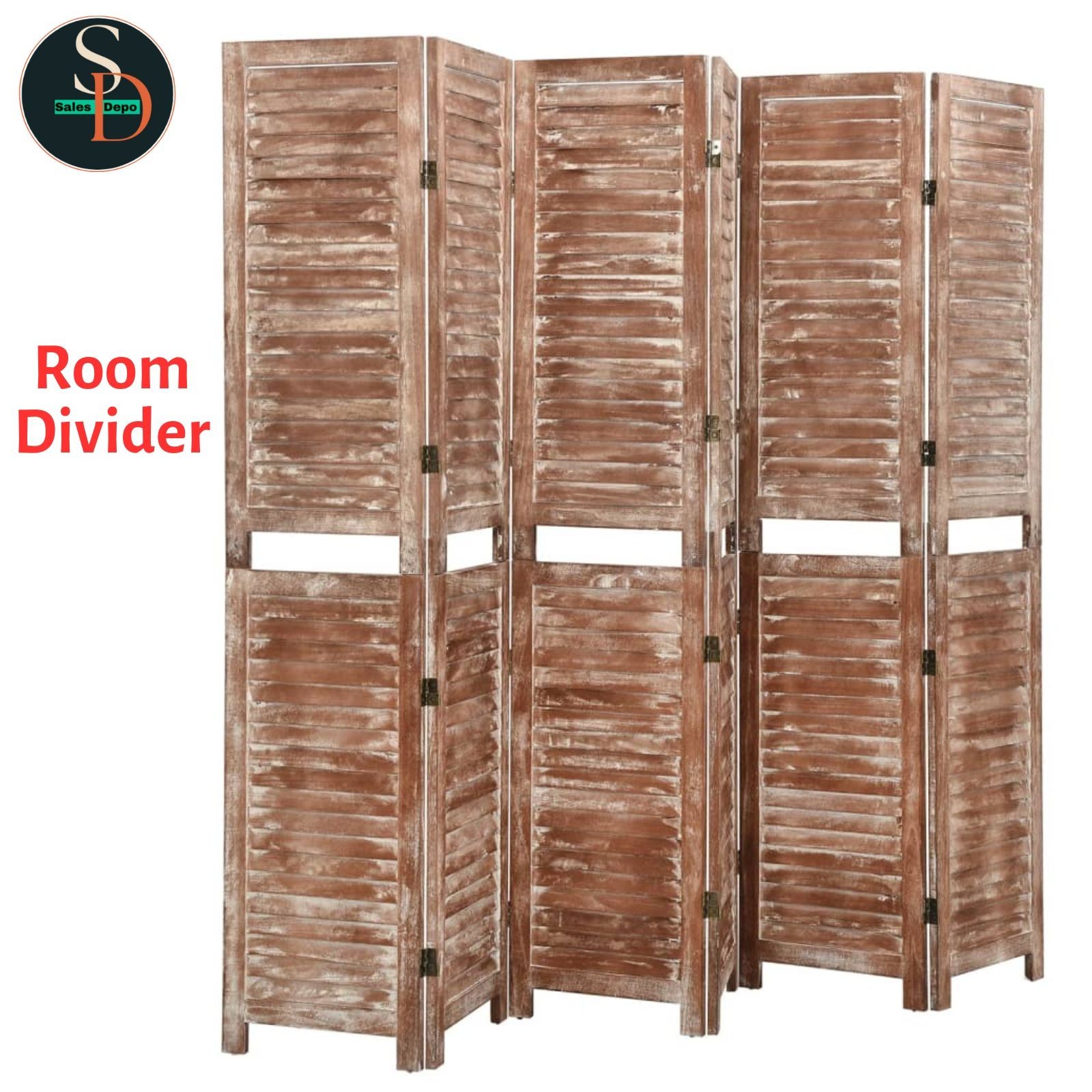 Solid Wood Paulownia 6-Panel Room Divider Brown Screen Partition vidaXL
