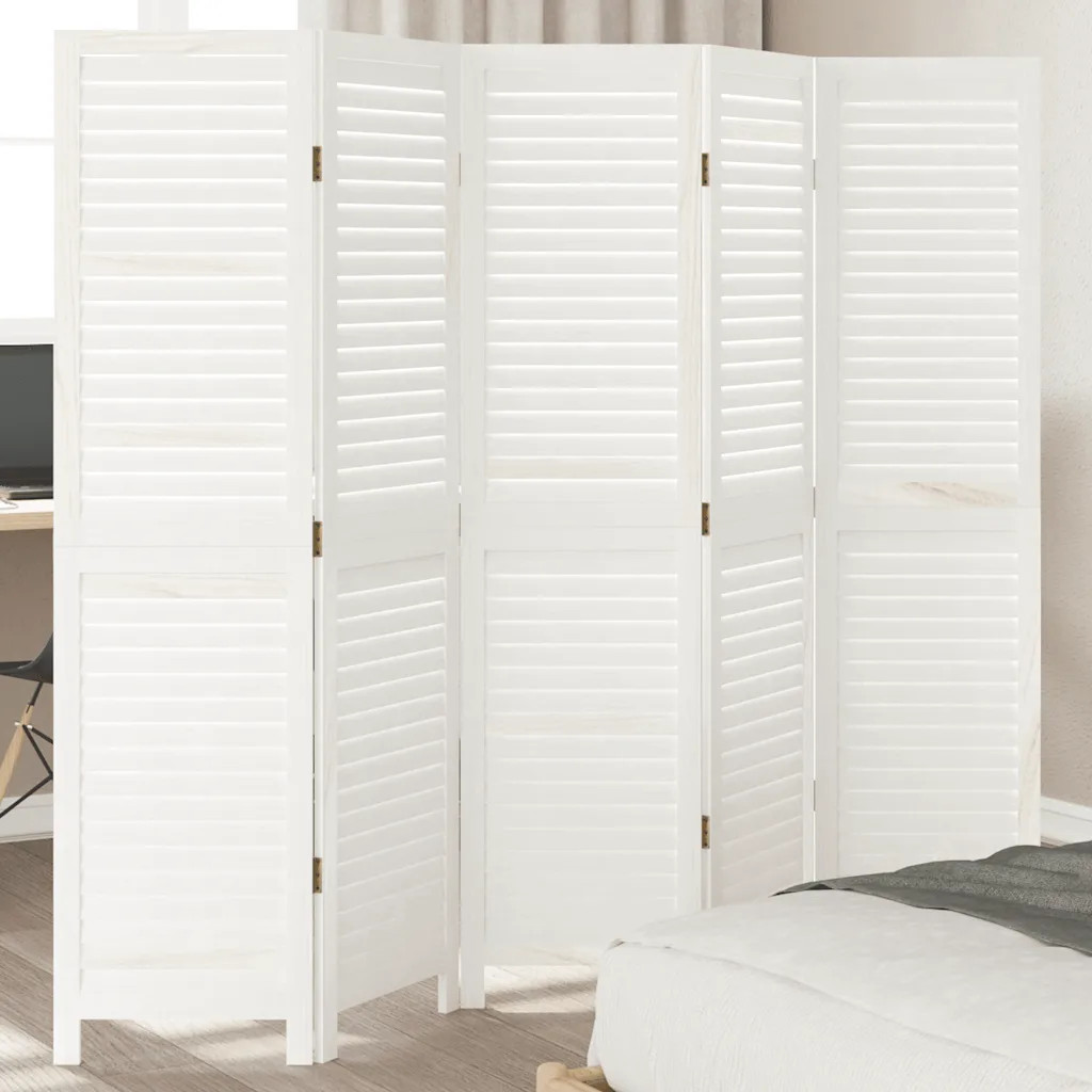 Room Divider 5 Panels White Solid Wood Paulownia vidaXL
