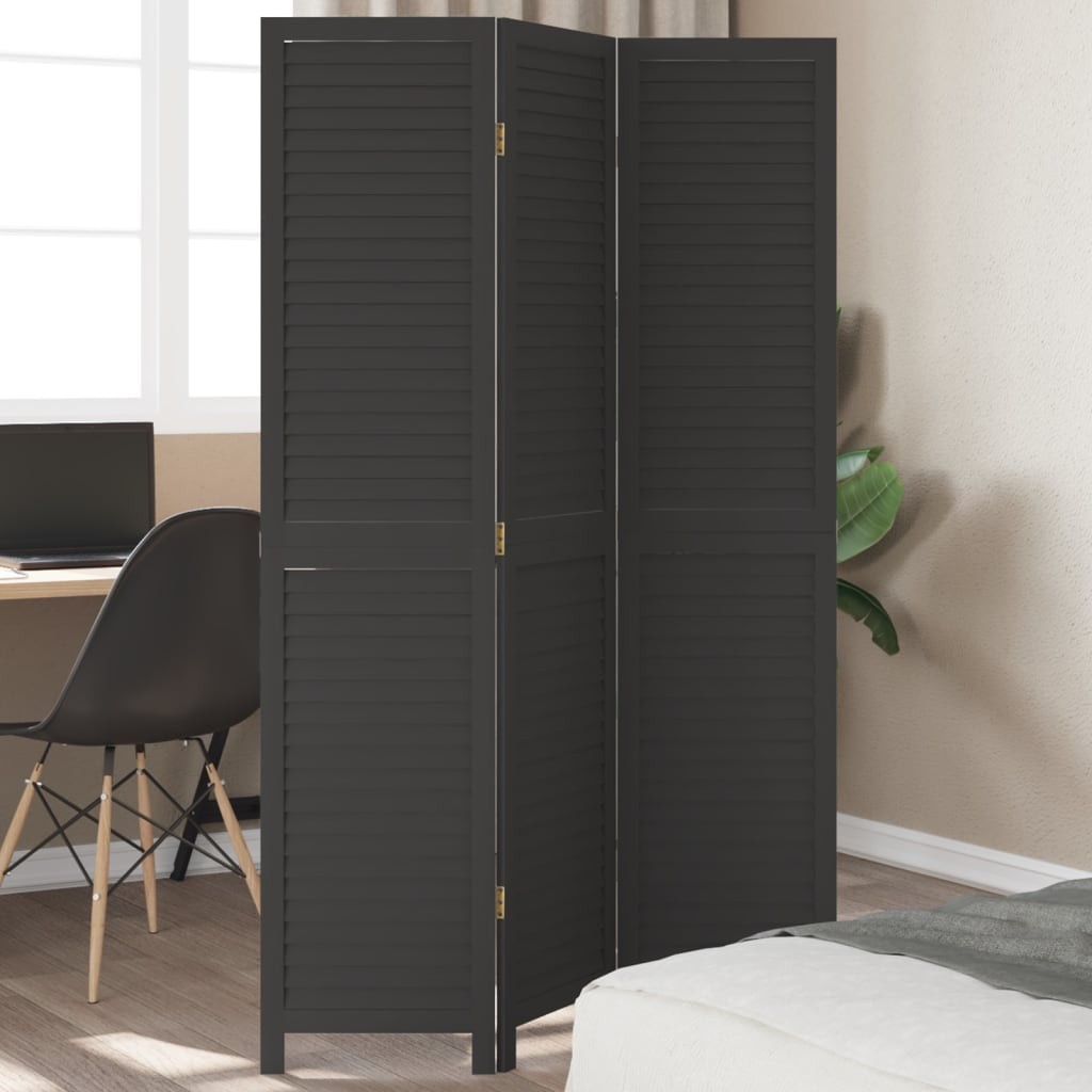 vidaXL Room Divider 3 Panels Black Solid Wood Paulownia