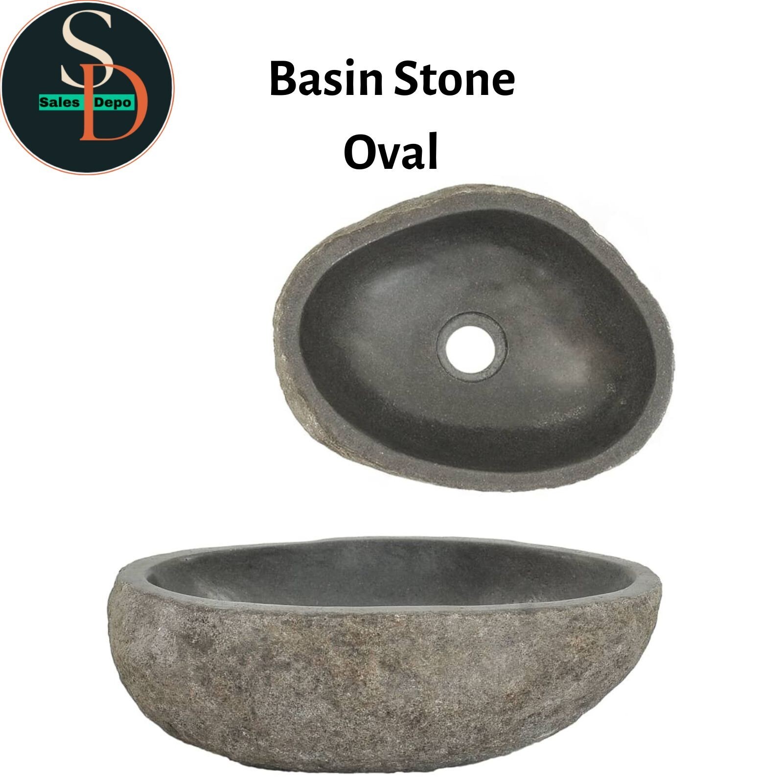 Natural River Stone Sink Basin Bowl for Bathroom or Washroom Oval 29-38cm