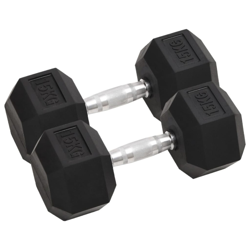 (2x 15 kg) vidaXL Dumbbell Cast Iron Hex Dumbbell Free Weight Plate Fitness Multi Models