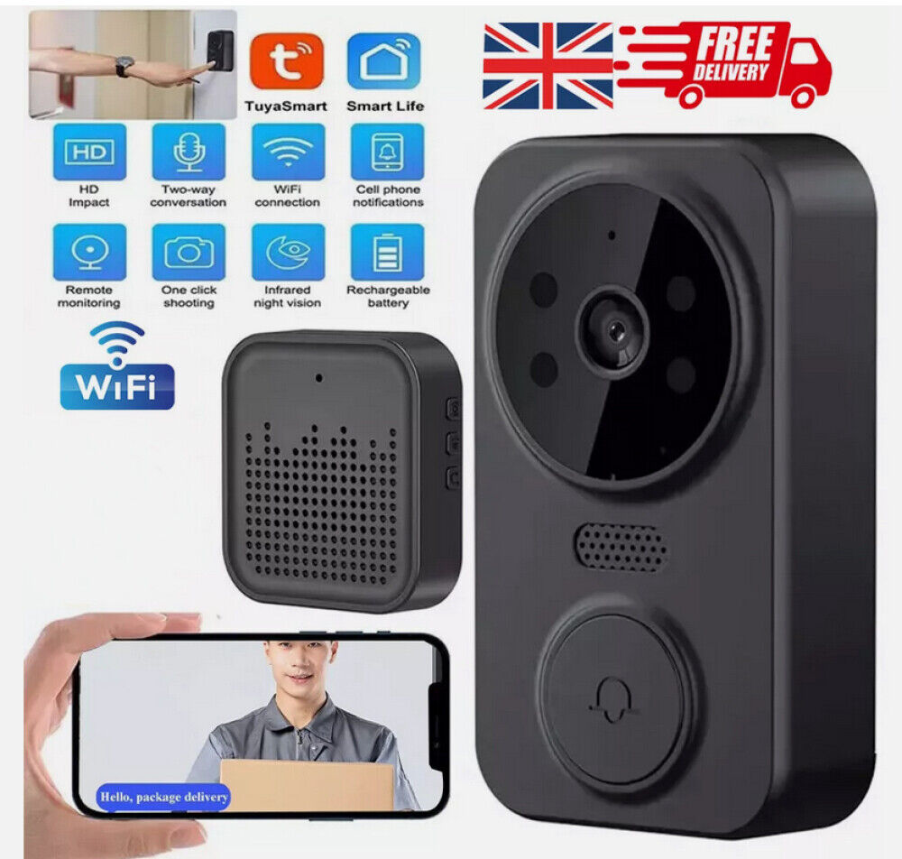 Smart Wireless WiFi Doorbell Intercom Video Camera Door Bell Chime Security UK