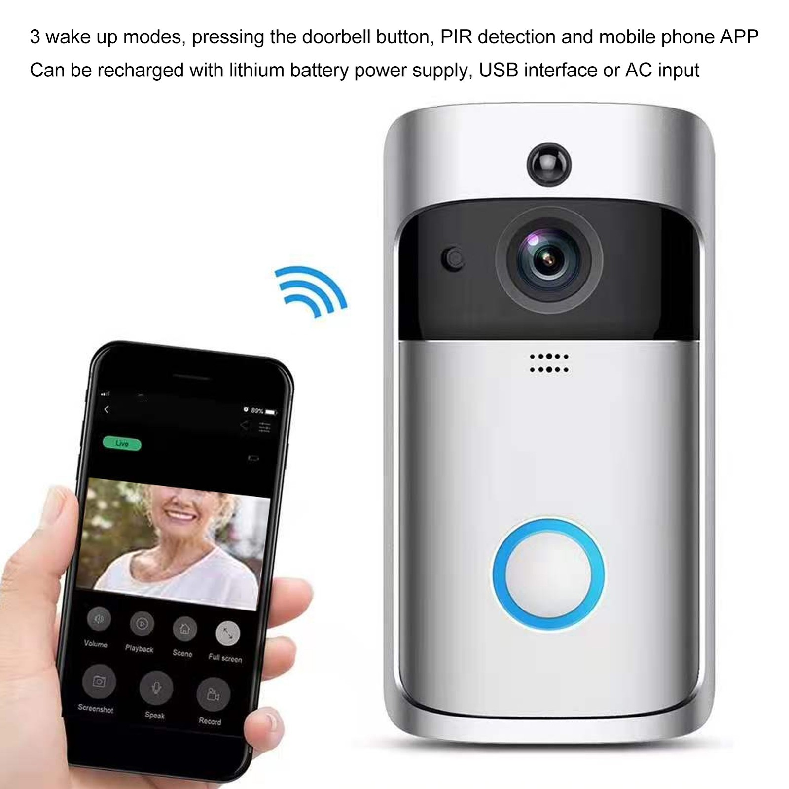 WiFi Video Doorbell Camera Bell With Remote Wake-up Feature Built-in