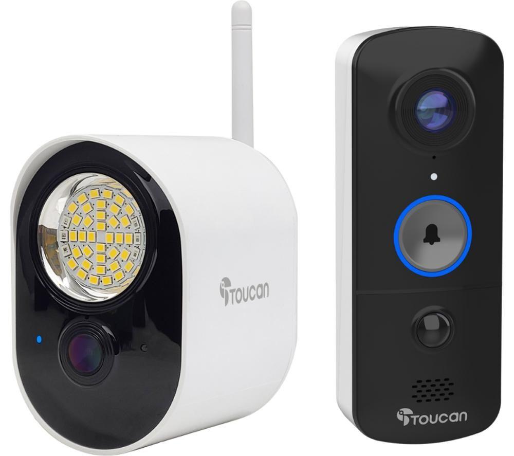 TOUCAN V3TSLC10-MLDX 1080p WiFi Video Doorbell with Chime & Security Floodlight Camera, White,Black