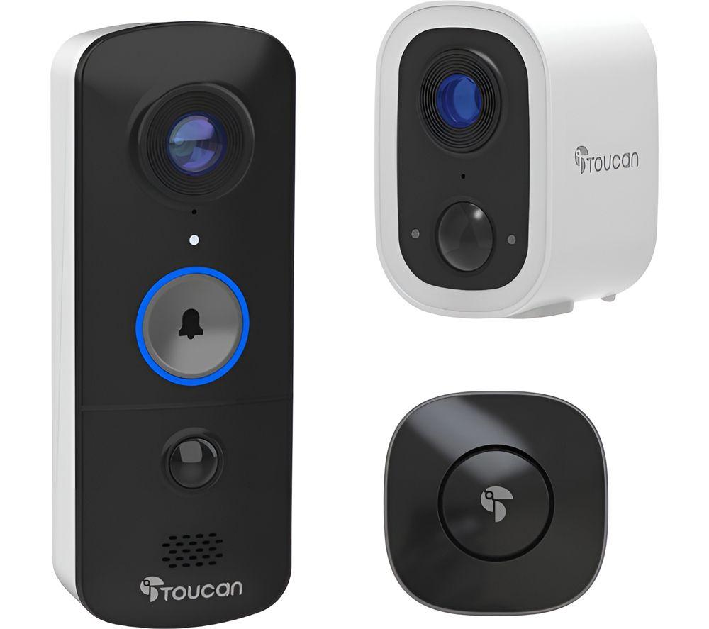TOUCAN V3S4DX-ML 1296p WiFi Video Doorbell with Chime & Wireless Security Camera S4, White,Black