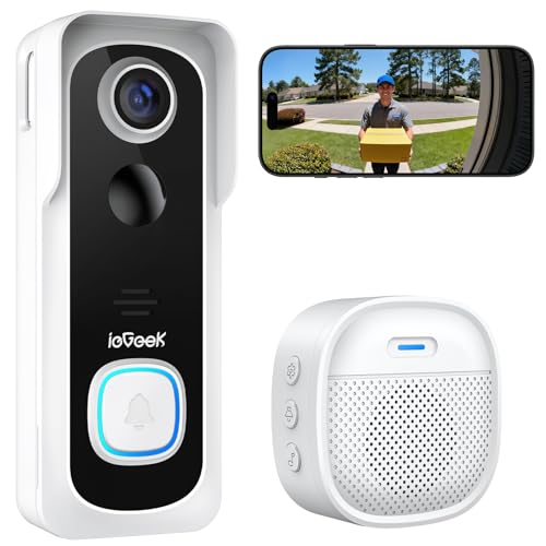 ieGeek Doorbell Camera Wireless No Monthly Fee, 2K HD Video Doorbell with Chime, Smart AI Detection Alert, 2-Way Talk, Night Vision, Only 2.4GHz WiFi, Works with Alexa, White