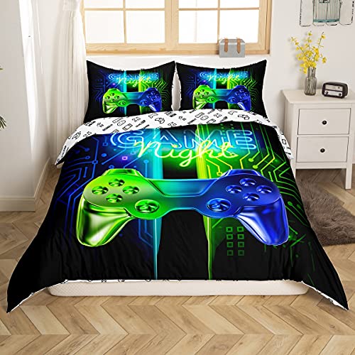 Loussiesd Kids Gaming Bedding Duvet Cover Boys Gamepad Video Game Comforter Cover Teens Bedroom Decor Microfiber Soft Modern Game Controller Games Duvet Cover Gradient Blue Green Bedspread,Double