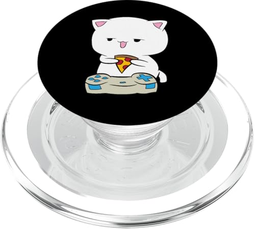 Cute Cat Playing Video Games and Eating Pizza PopSockets PopGrip for MagSafe