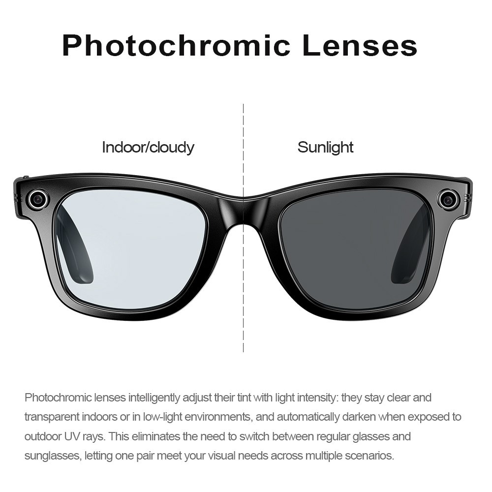 ZZwansuGE AI Glasses (Photo Taking + Video Recording + Call), With Hd 200w Pixel Camera + Speaker, Auto-Tinting Lenses, Sync Apps (Pedometer/Distance/Calories), For Travel, Cycling, Fishing