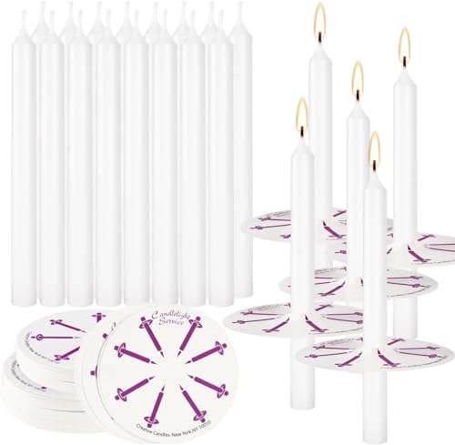 LIVEN 200 pcs Church Candles with Drip Protectors for Devotional Candlelight Vigil Service, Unscented White 5" H X 1/2" D, No Smoke, Shabbat, Praye