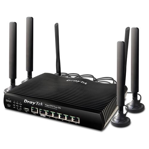 DrayTek Vigor V2927LAC Gigabit Ethernet Failover Router, 3G/4GLTE Embedded Sim Slots, AC Wireless, Dual-WAN Load Balancing, 50 VPN Connections, 5 GbE LAN Ports, Magnetic Base LTE Antenna's