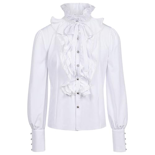 Ruffle Shirt Men's Renaissance Medieval Shirt Long Sleeve Victorian Viking Pirate Shirt Classic Costume Shirt Gothic Men's Shirts Festival Outfit Ruffle Tops for Halloween Costumes