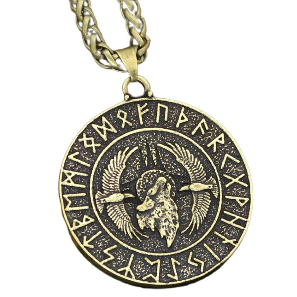MayiaHey Nordic Viking Odin Wolf Necklace for Men, Vintage Flying Eagle Necklace Viking Rune Amulet Necklace for Boys (Gold)