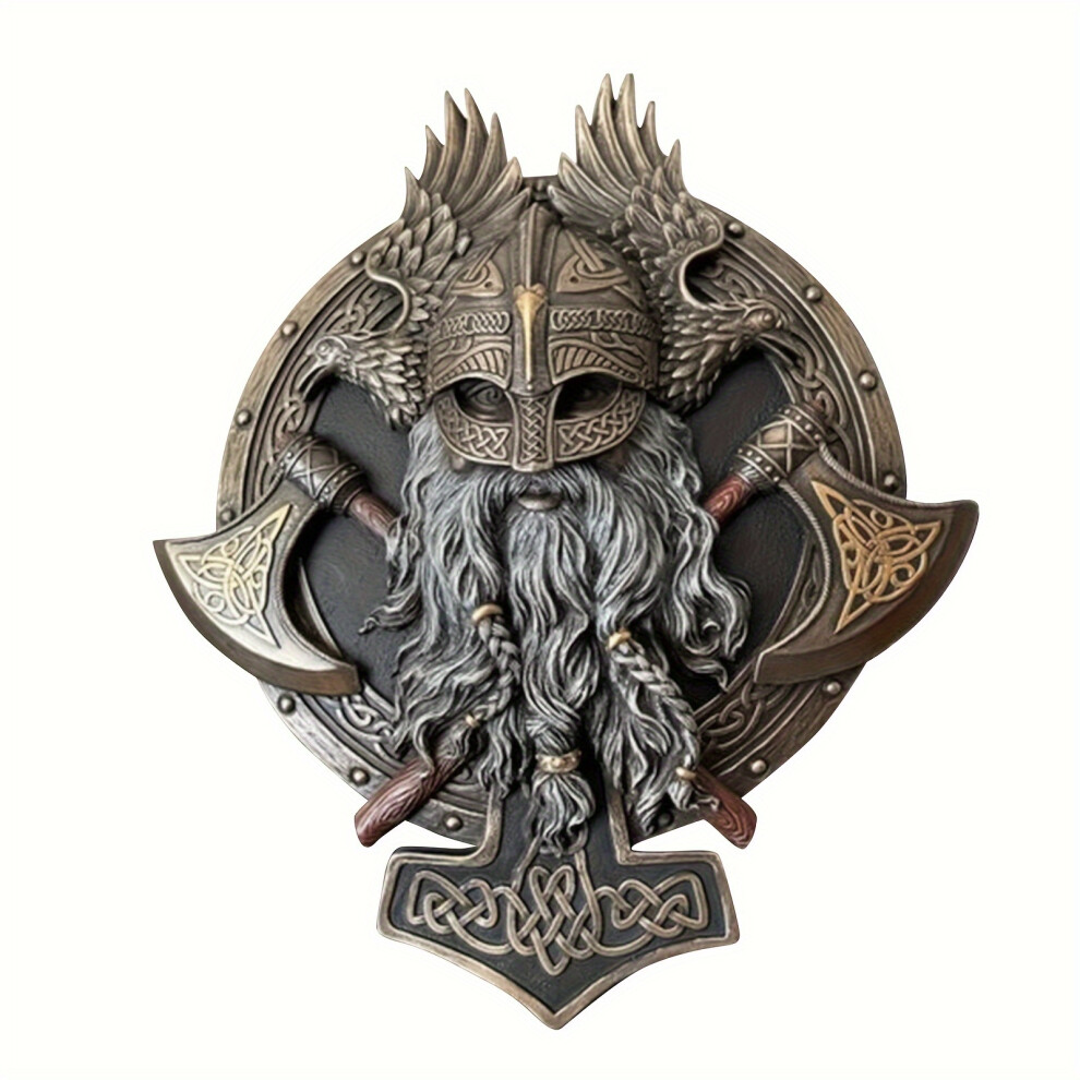 (Ares Style) Ares Wall Plaque Valhalla Sculpture Cold Cast Bronzed Resin, Eagle Pirate Skull Relief Viking Crazy Warrior Double Axe Wall Decoration