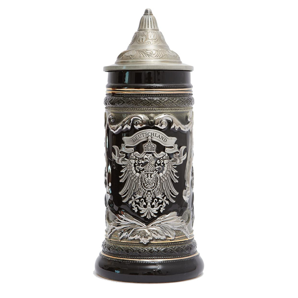 HAUcOZE Beer Stein Mug german Eagle Medallion Stanley Viking Tankard with Petwer Lid Birthday gifts 06Liter