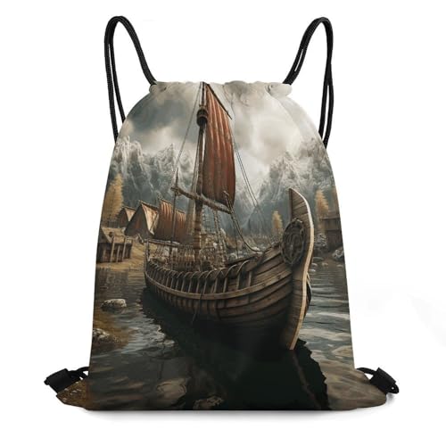 FodPand Old Viking Boat Drawstring Backpack Gym Trip Cinch Sack for Unisex Waterproof Shoe Bags for Travel Honeycomb Fabric Drawstring Bag 16x 20 Inch for Swimming Beach