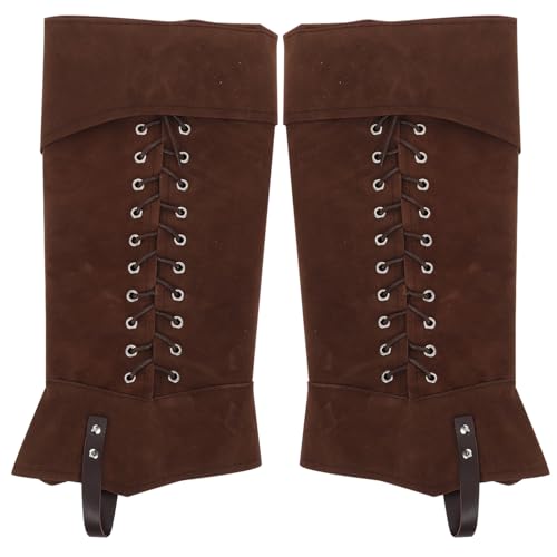 Holibanna Brown Renaissance Medieval Boot Covers Gaiters for Men and Women, Short Faux Leather Shoe Covers for Pirate, Viking, and Cosplay Costumes, Suitable for Halloween and Renaissance