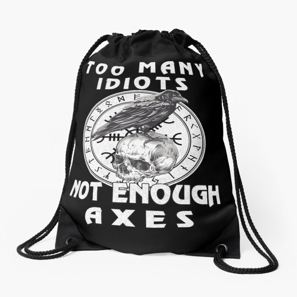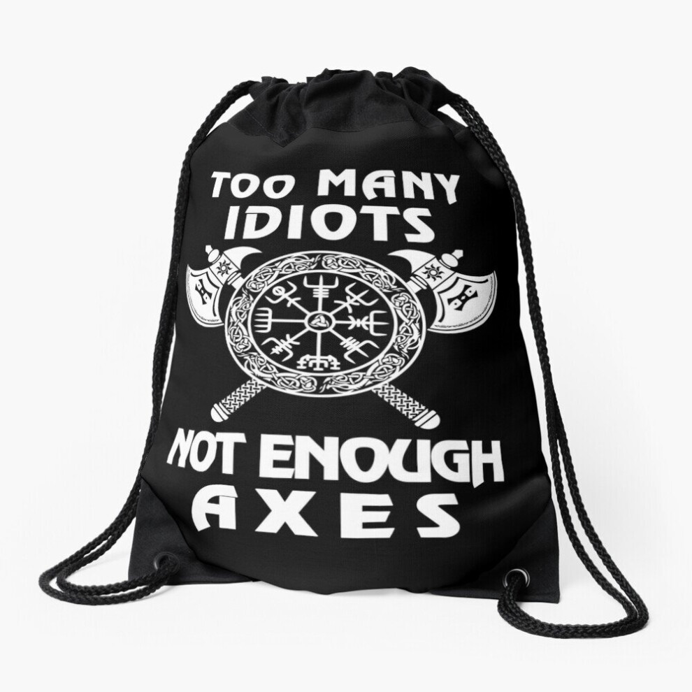 Drawstring Bag Too Many Idiots Not Enough Axes Viking Sport Gym Shoe Backpack