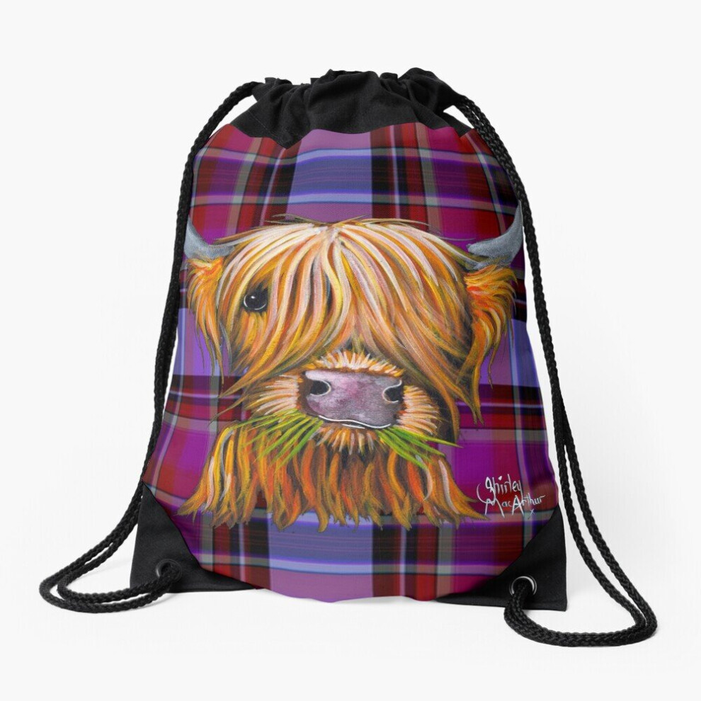 Drawstring Bag SCoTTiSH HiGHLaND CoW ' TaRTaN LiTTLe ViKiNG P ' by SHiRLeY MacARTHuR Sport Gym Shoe Backpack