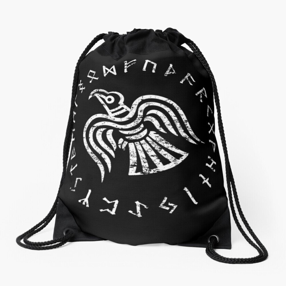 Drawstring Bag Norse Raven Elder Futhark Viking Runes Distressed White Sport Gym Shoe Backpack