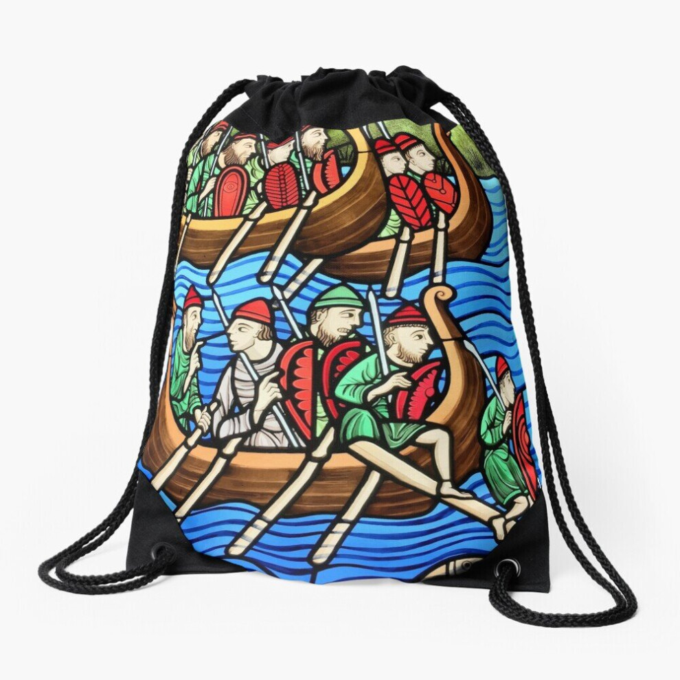 Drawstring Bag Viking Ships Stained Glass Medieval Chruch Window Sport Gym Shoe Backpack