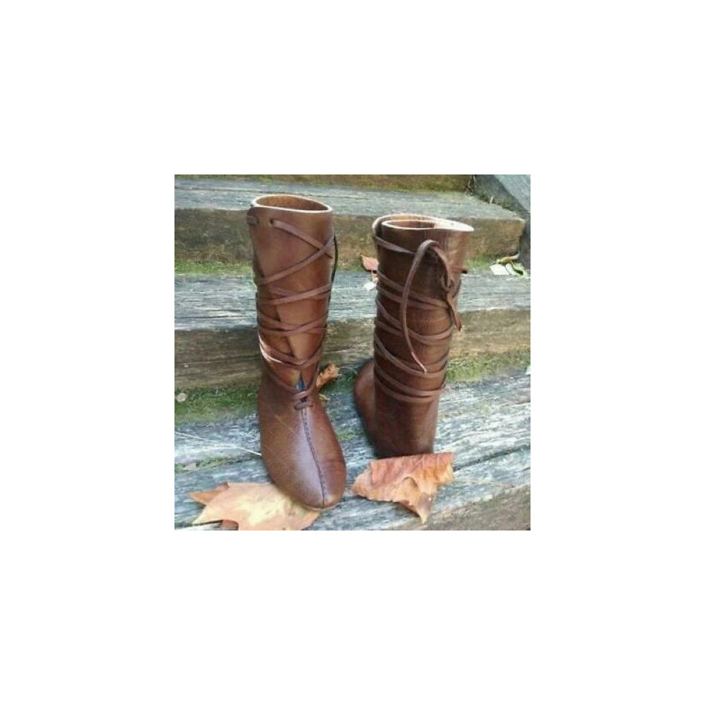 (Brown, US5=UK3=EUR36=feet length 23cm) Medieval Viking Leather Boots Brown Boots Men's Shoe Knight Boots