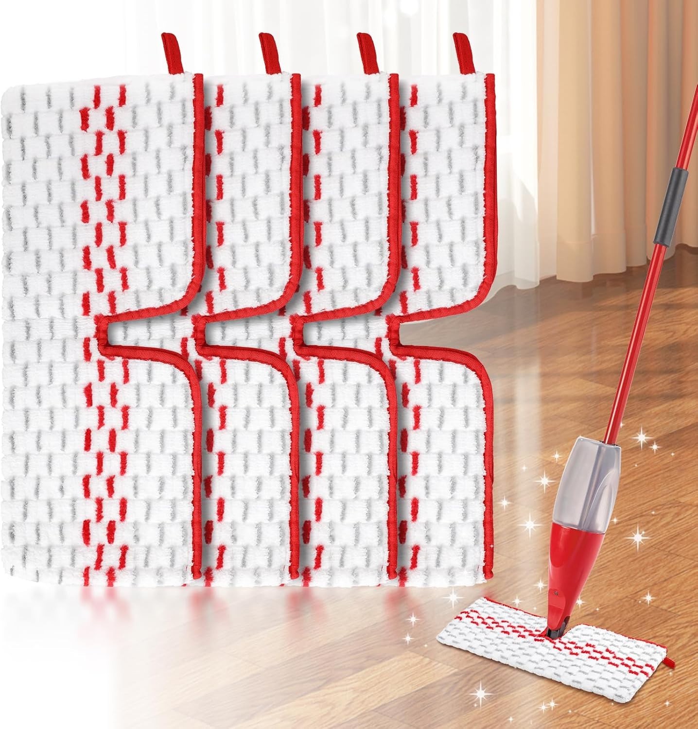 4-Pack Microfiber Mop Pads, Double-Sided Cleaning, Wet or Dry Use, Compatible with Vileda ProMist MAX Spray Mop Replacement