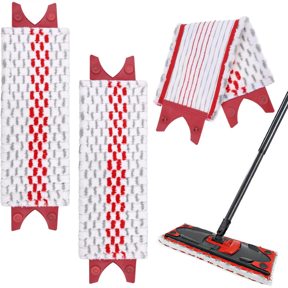 (Red, One size) 2pcs Floor Mop Replacement Cover Compatible Vileda Ultra Max, Microfibre Replacement Mop Cover