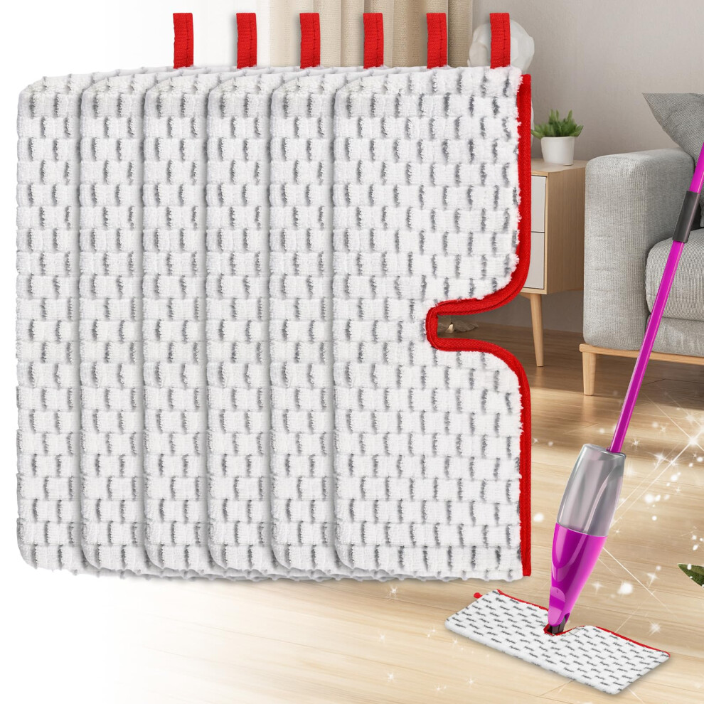 Gaethra 6 Pack Spray Mop Pad Replacement Compatible with Vileda ProMist MAX, Double-Sided Microfibre Spray Mop Pads for 1-2 Spray, Reusable & Machine