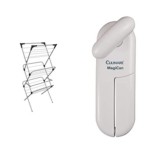 Vileda 159127 Sprint 3-Tier Indoor Airer, 15 m, Silver & Culinare C10015 MagiCan Tin Opener | White | Plastic/Stainless Steel | Manual Can Opener | Comfortable Handle For Safety and Ease