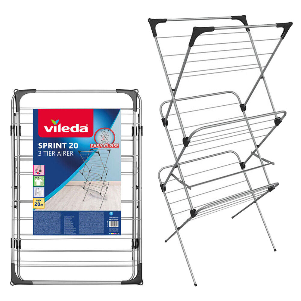 Vileda Clothes Airer Sprint 20 3 Tier Indoor Folding Free Standing 147x 61x 61cm