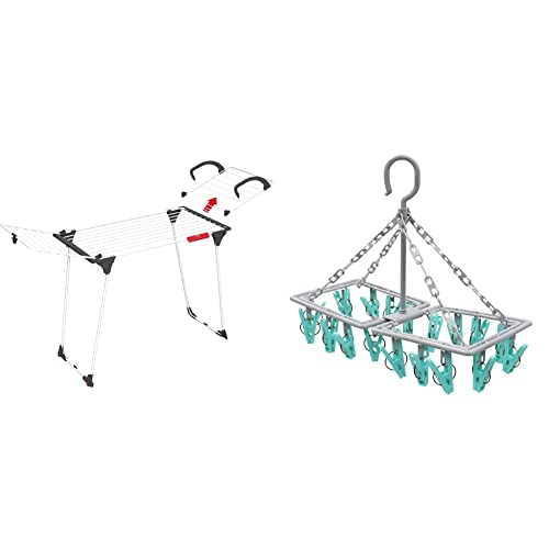 Vileda Premium 2-in-1 Indoor Airer & JVL Folding Sock Dryer Complete with 20-Piece Clothes Peg, Aqua, Grey, White, One Size, 19-291