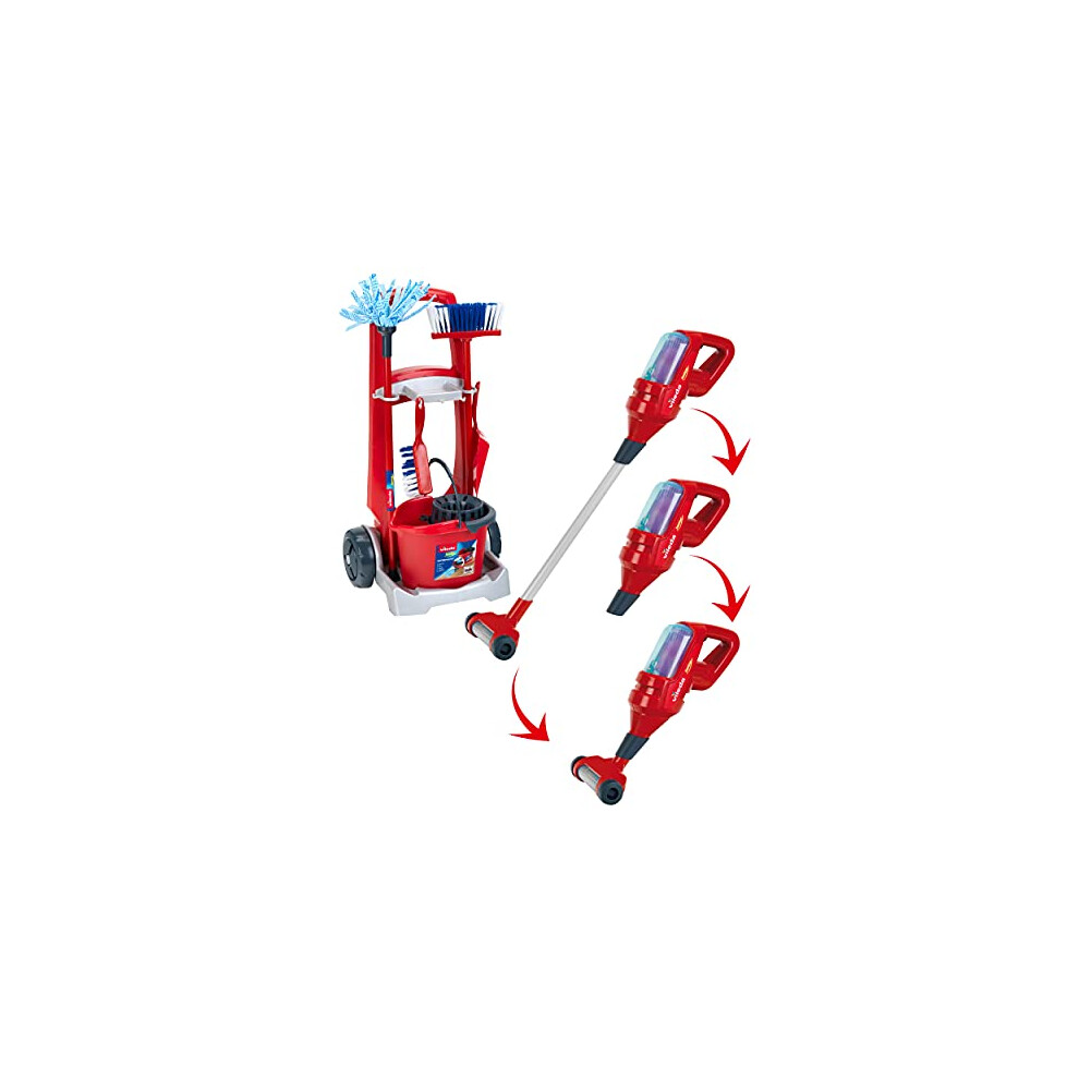 Theo Klein 6720 Vileda broom trolley with upright vacuum cleaner I Incl. Accessories such as mop, bucket, brush and dustpan I Dimensions: 29 cm x 24