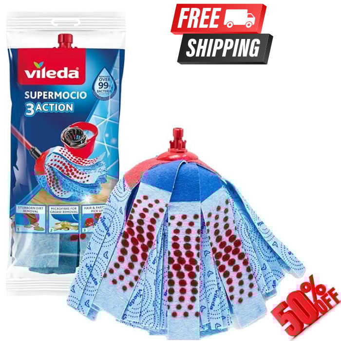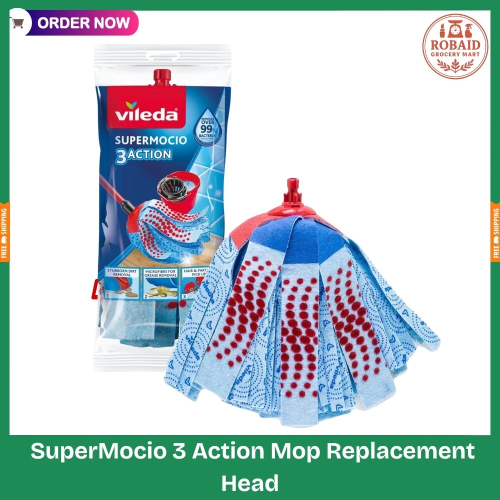 Vileda SuperMocio 3 Action Mop Refill Head Powerful Deep Clean, Ultra Free Post