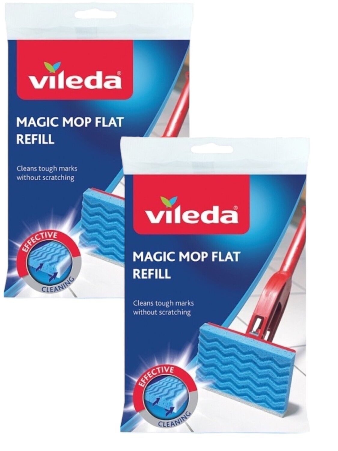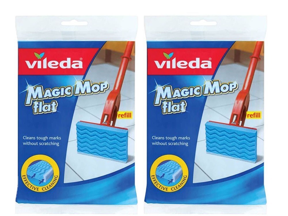 2x Vileda Magic Mop Flat Refill Absorbent Non-Scratch Scourer Head Replacement
