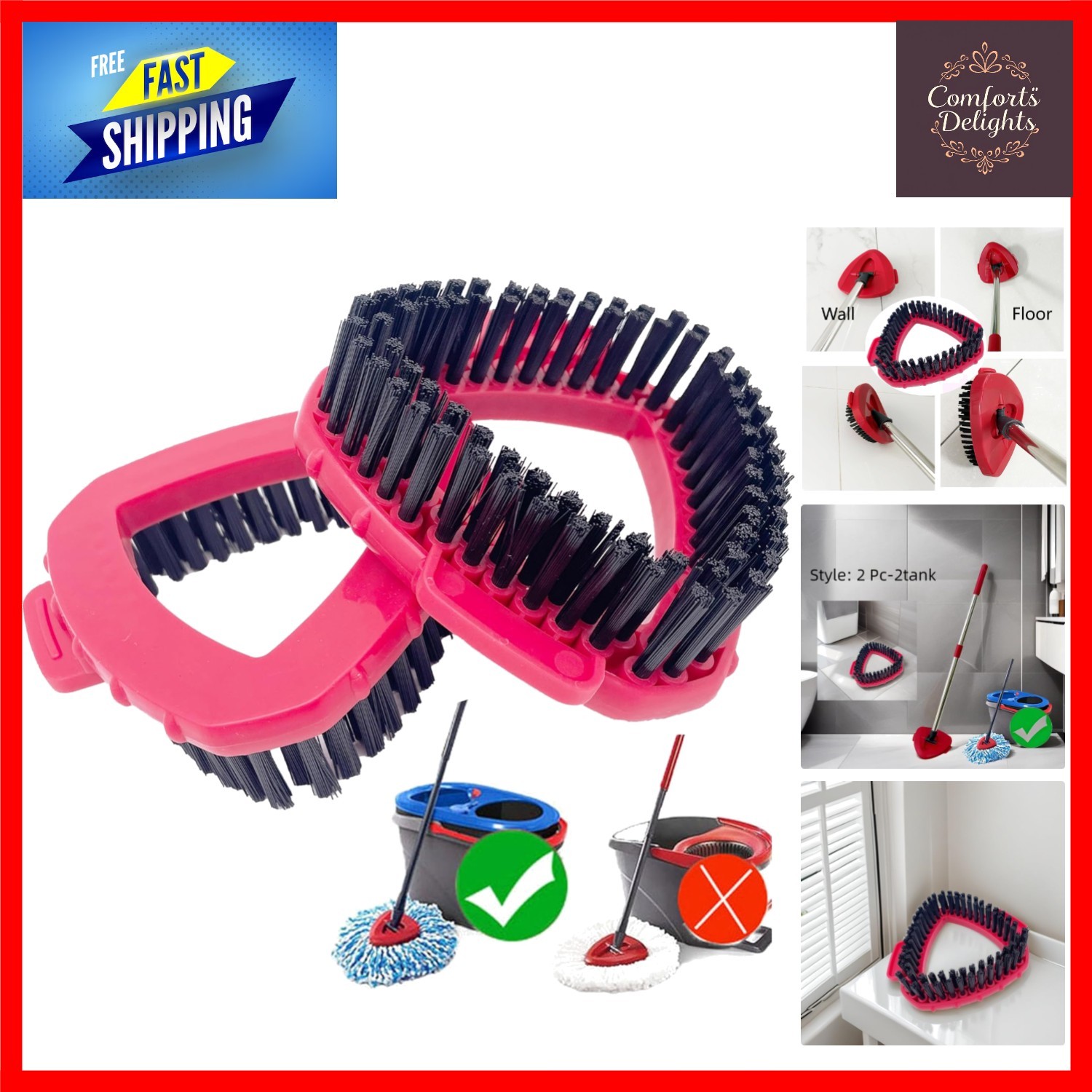 Red Spin Mop Head Base with Handle for Vileda Turbo Spin 2in1,3in1 Mops Refill Replacement,Triangular Spin Base for Turbo Smart/EasyWring&Cleaning Mop Accessory - Not Include Mops Head Cloth