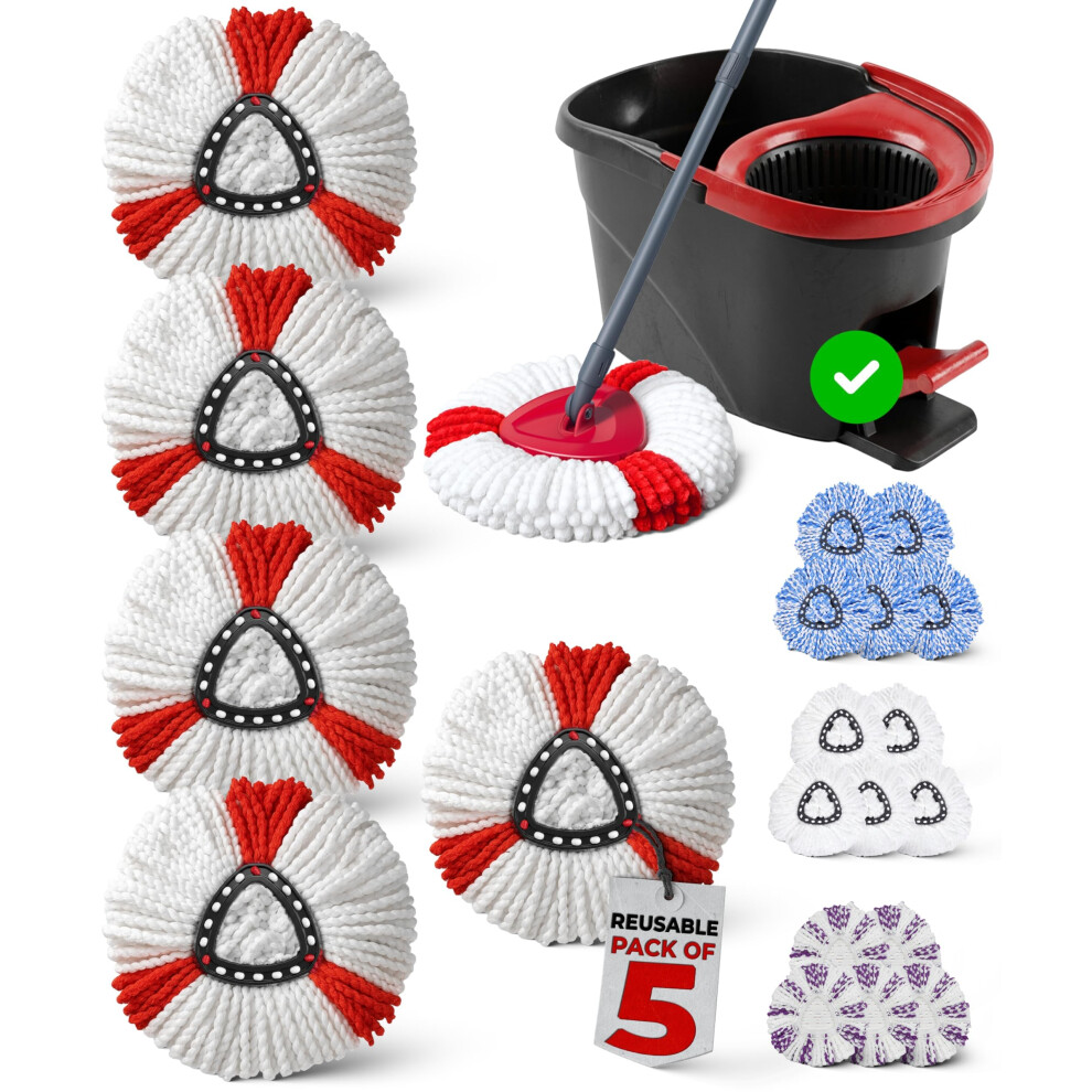 Spin Mop Heads - Compatible with Vileda Mop Head Replacement - Super Absorbent, Fast Drying Triangular Design Floor Pads for Multi-Surface Cleaning - Pack of 5