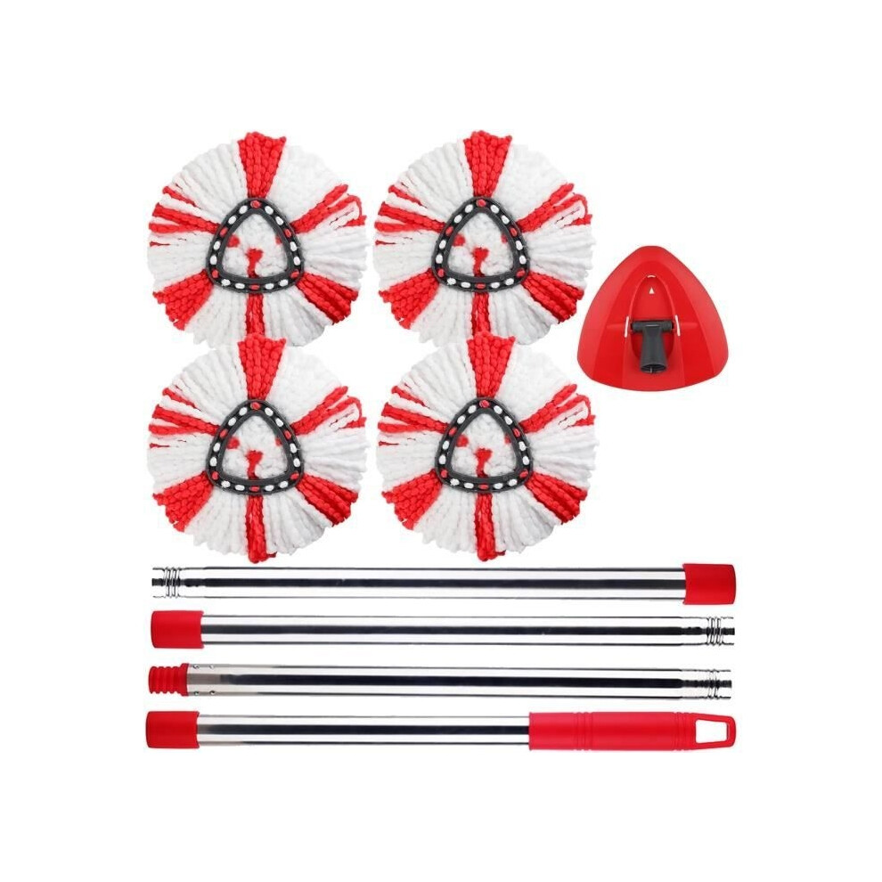 PIMEKOY Spin Mop Head Replacement, Base, Handle Compatible with Vileda Turbo Microfibre Mop, 4 Microfiber Heads, 1 Triangle Cover and 76-148cm Handle Combo Set