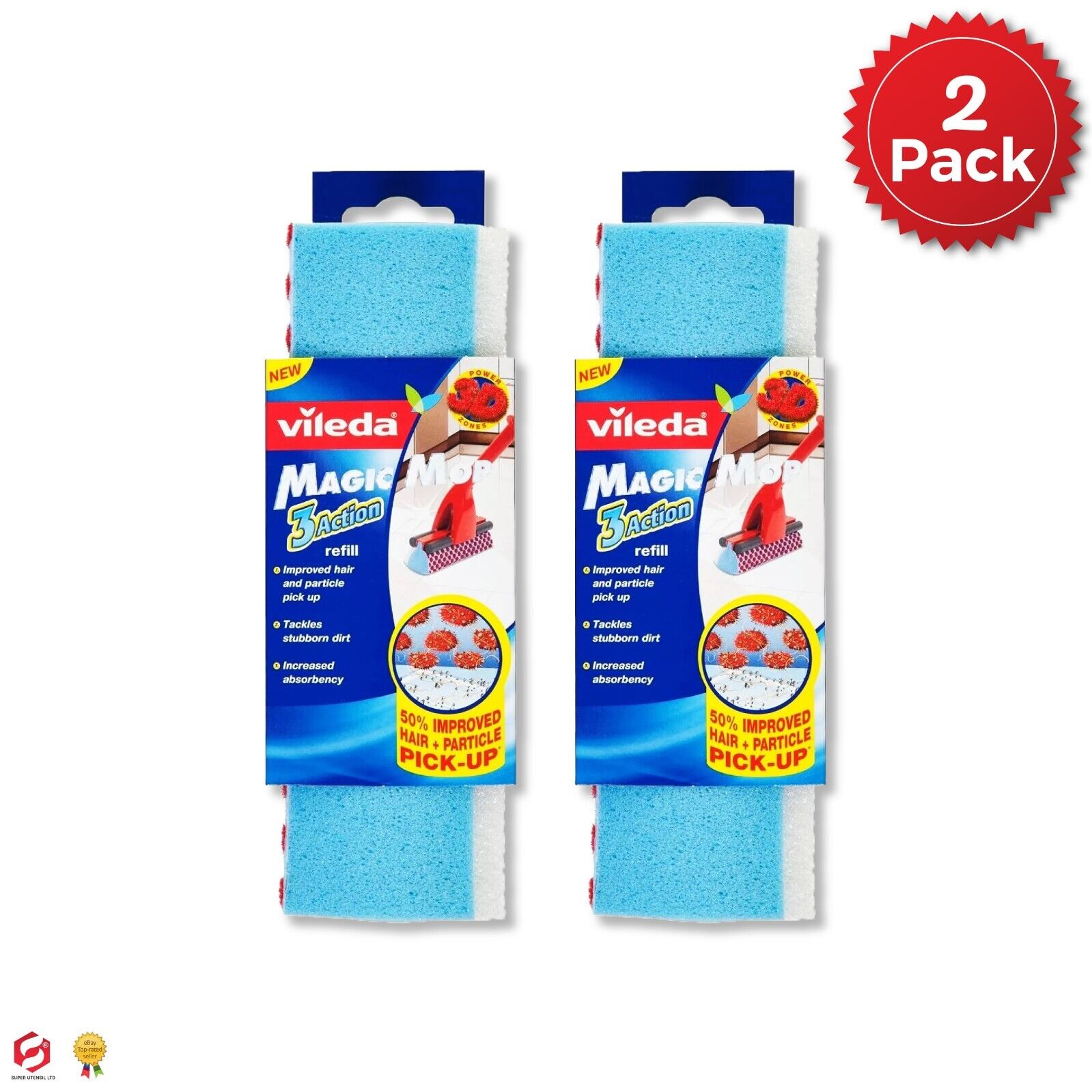 Mop Replacement Head 3 Action Refill Vileda Magic Absorbent Sponge Pack Of 2