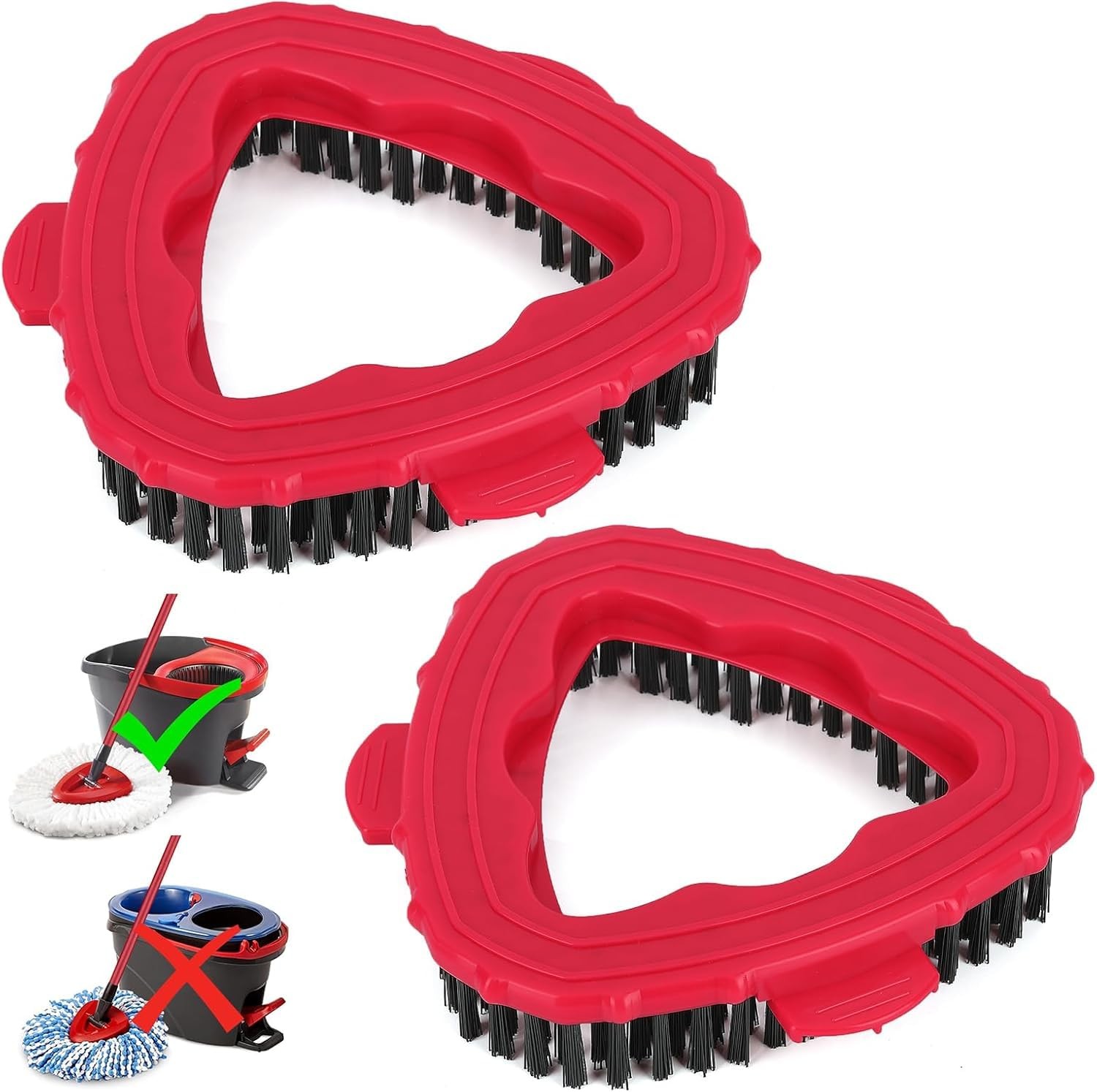 2 Pack Upgraded Spin Mop Replace Scrub Brush Compatible with Vileda Turbo/Ocedar Mop System, More Layers of Bristles Great for Kitchen, Deck, Bathroom and Shower Floor Scrubber Head Replacement