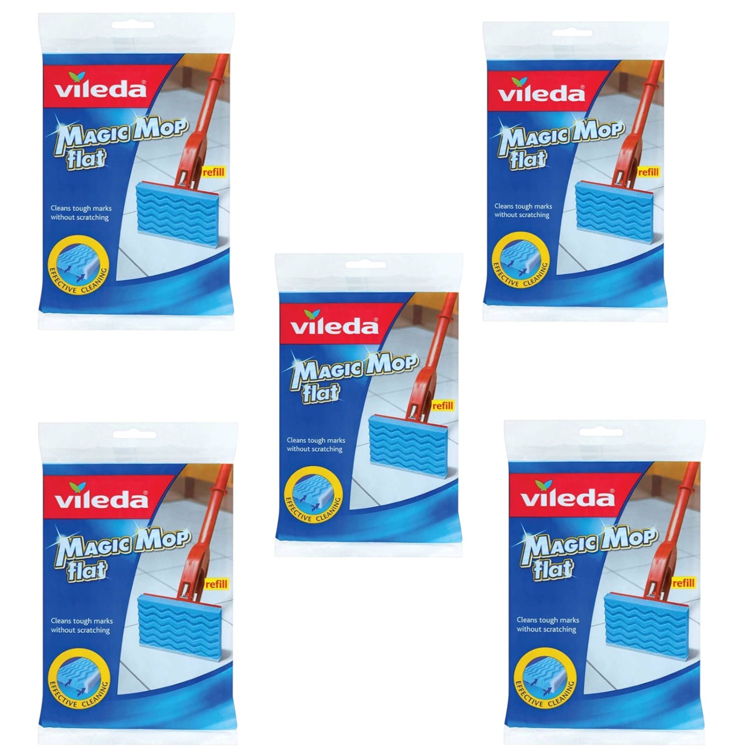 Vileda Magic Mop Flat Head Refill Pack of 5 Non-Scratch Scourer Head Replacement