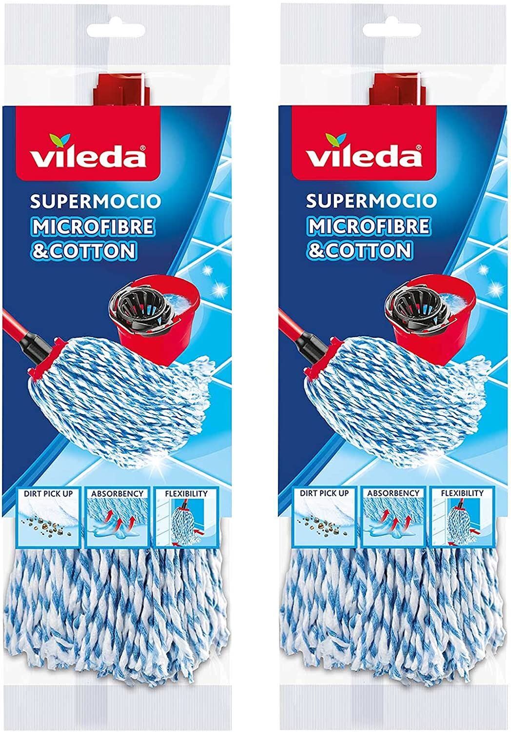 2 Vileda SuperMocio Microfibre Mop Replacement Head Refill Twin Pack