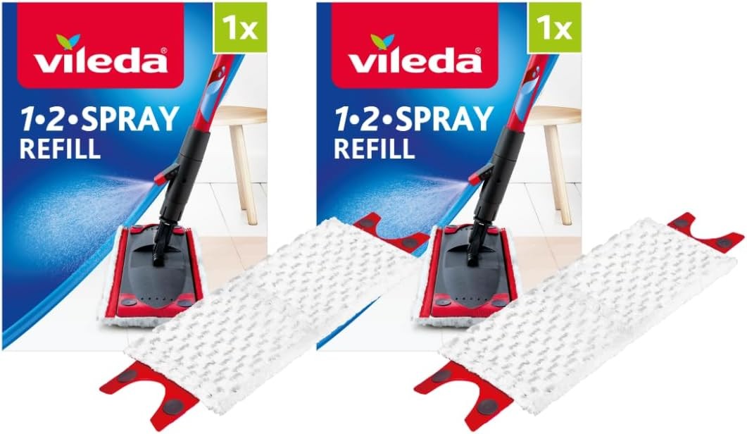 Vileda 1-2 Spray Microfibre Pads Refill Mop Head Replacement Set for Vileda Ultramax and Spray Mops Refills, (Pack of 2)