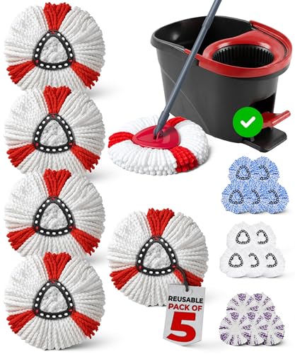Mop Heads Replacement- 5 Pack Compatible with Vileda Mop Head Replacement 1 Tank / 2-in-1 Turbo - Spin mop heads replacment for vileda - Machine wash