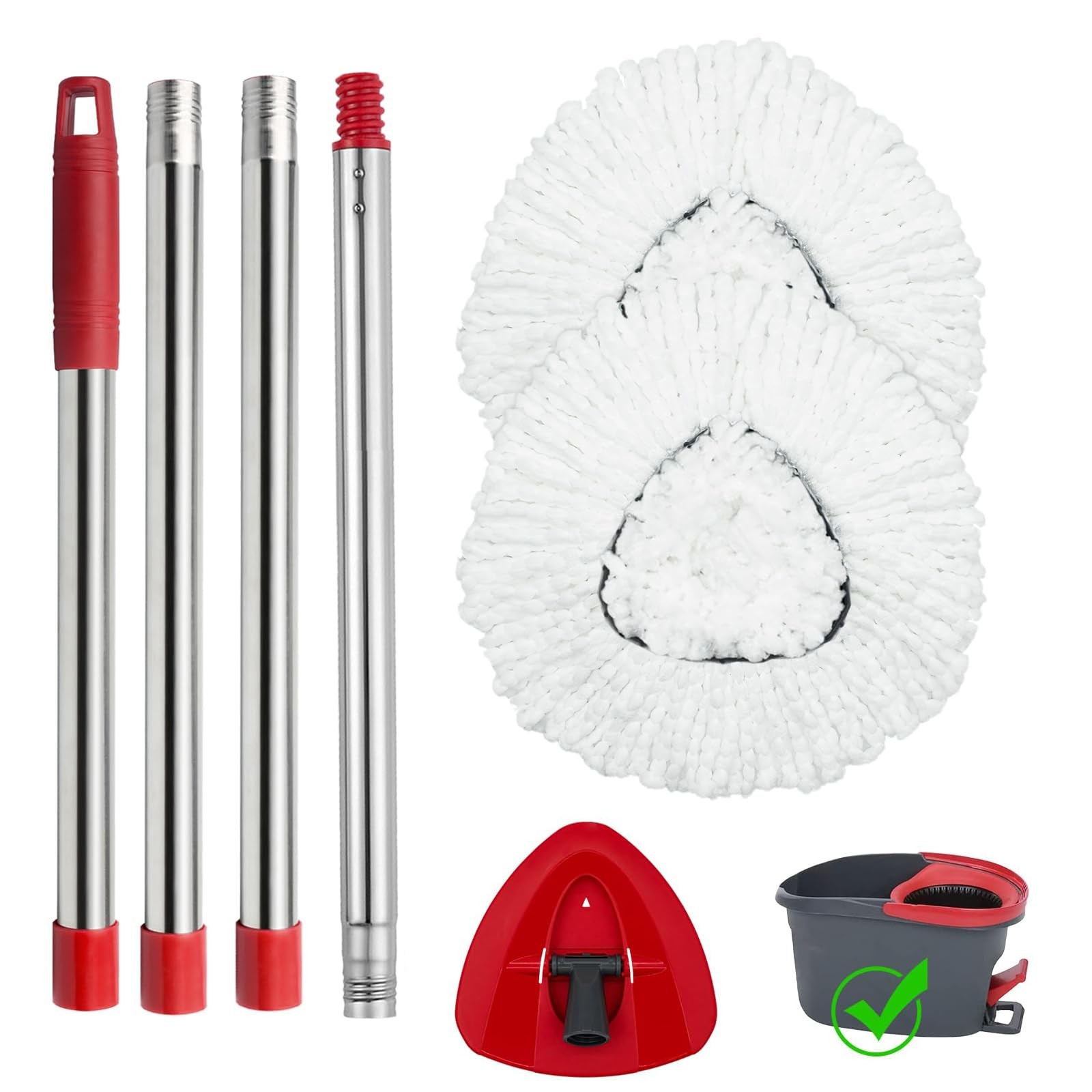 2 Spin Mop Replace Head Compatible with Vileda Turbo System, 30”-58" Mop Handle, Upgraded Triangle Base and Scrub Brush Combo Set Replacement, Microfiber Refills