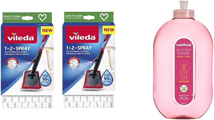 Vileda 1-2 Spray Mop, Microfibre Flat Floor Spray Mop with Extra Head Replacement & Ibergrif M34151-3 Toilet Brushes & Holders, Deep Cleaner Silicone Toilet Brush, Flat Toilet Brush