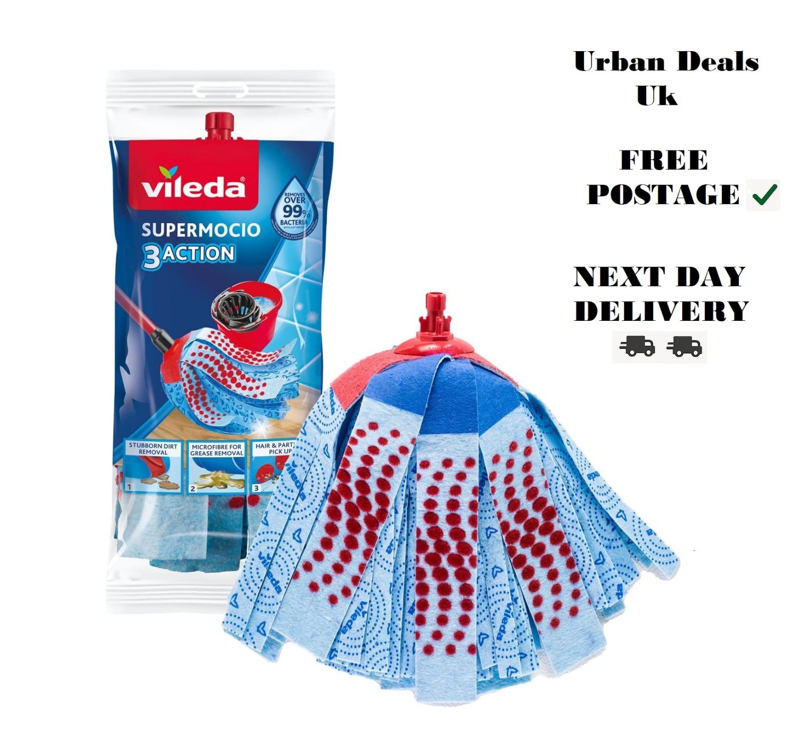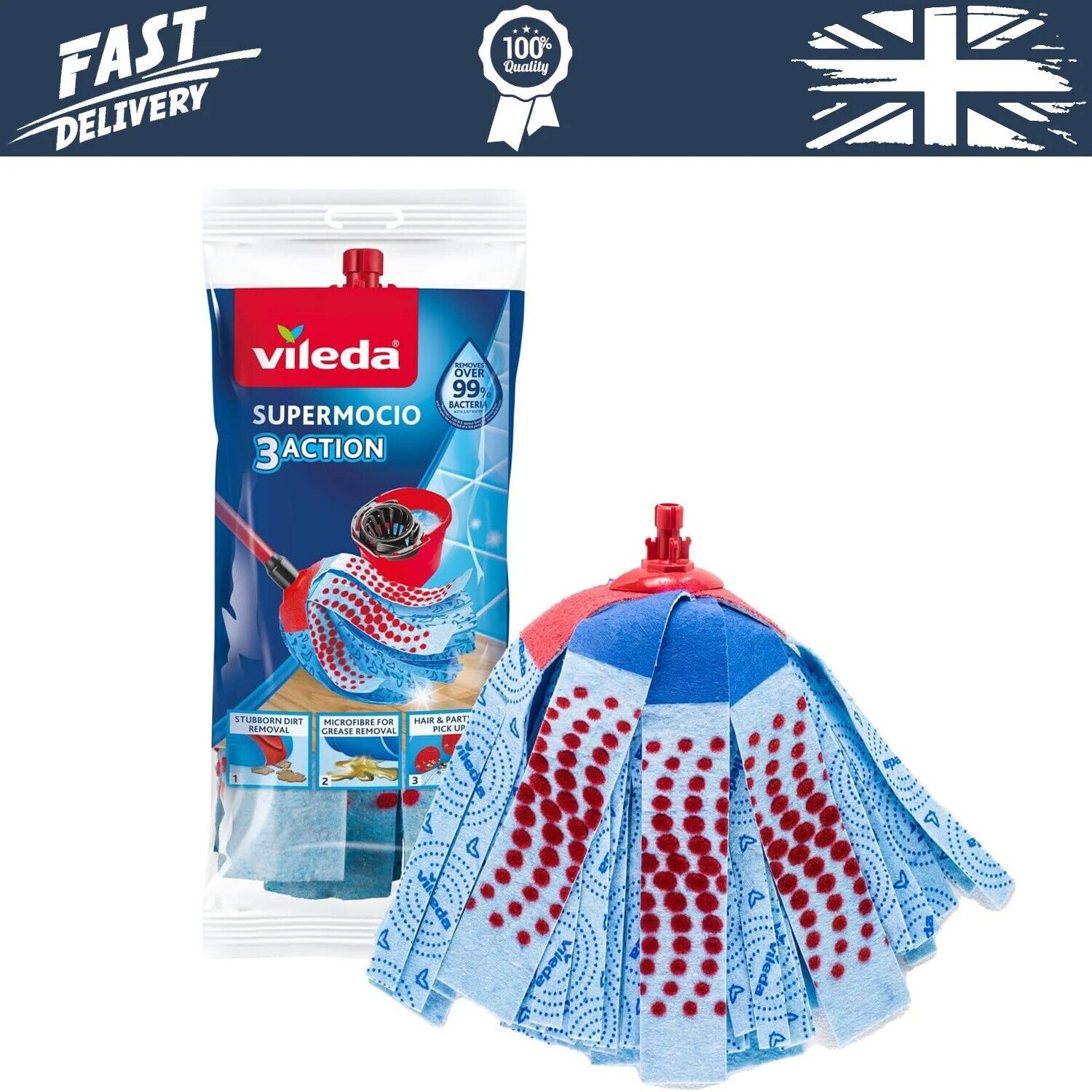 Vileda SuperMocio 3 Action With Replacement Head Mop Refill PACK of 2 FREE POST