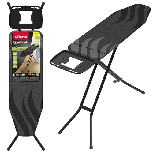 Vileda Total Reflect Ultimate Ironing Board, Extra Fast Ironing, Extra Robust, Wide Ironing Surface, Adjustable Height, XXL Iron Rest, Easy to Fold and Store